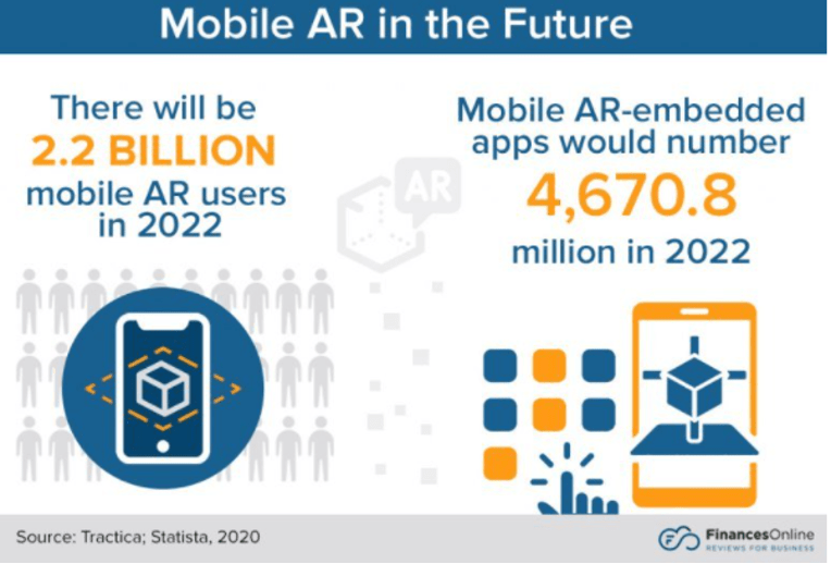 Mobil AR, kullanıcıların pahalı kulaklıklar veya yazılım satın almaları gerekmediği için oldukça maliyet etkin bir çözümdür. Mobil telefonlarda çalışan AR uygulamaları, hem iş hayatı hem de sosyal hayat ve eğlence için akıllı telefon sahiplerine birçok ilginç ve yararlı deneyim sunar. Mesela Snapchat ile insanlar yüzlerine ekledikleri efektler ile eğlenirken, uzaktan yardım uygulamaları ile de evlerinde bir uzmandan yardım alarak yeni aldıkları bir mobilyayı kurabilirler. 2022 yılında da AR mobil uygulamalarının kullanımının hızla artacağı beklenmektedir.