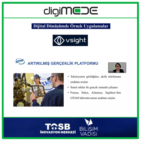 TOSB İnovasyon Merkezi ve Bilişim Vadisinin koordinasyonunda hazırlanan organizasyon “Dijital Dönüşümde Örnek Uygulamalar” programında kullanıcılarımızdan MAN adına Sinan Savaş, OTAM adına Saadet Atak konuştu, sunumlarını gerçekleştirdi. Katılan tüm misafirlerimize, sunum yapan VSight kullanıcılarımıza, organizasyonu planlayan TOSB ve Bilişim Vadisi yetkililerine teşekkür ediyoruz.