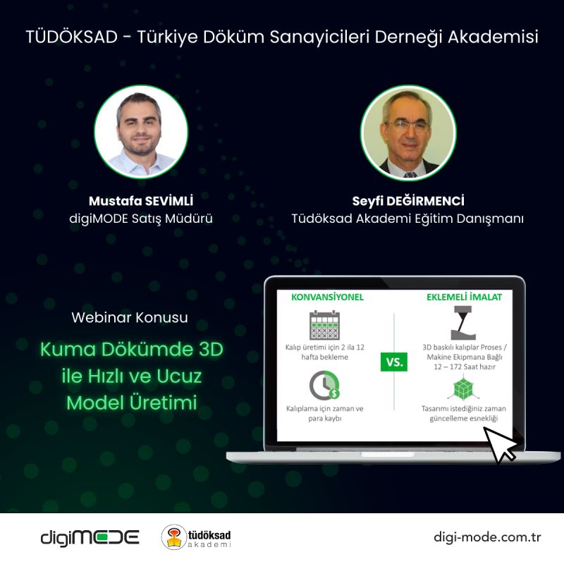 🎤 Satış Müdürümüz Sn. Mustafa Sevimli; Tüdöksad (TÜDÖKSAD Türkiye Döküm Sanayicileri Derneği) Akademi yürütücülüğünde ve Tüdöksad Akademi Eğitim Danışmanı Sn. Seyfi Degirmenci moderatörlüğünde gerçekleştirilen webinar serisine “Kuma Dökümde 3D ile Hızlı ve Ucuz Model Üretimi” hakkındaki sunumuyla konuk oldu. 🎯 Model üretiminde, geleneksel yöntemlere göre hız ve maliyet avantajı sağlayan 3D dönüşümünün detaylarını YouTube linki üzerinden izleyebilir, sorularınız için bizimle iletişime geçebilirsiniz.